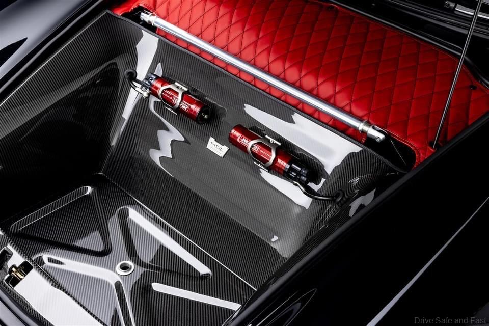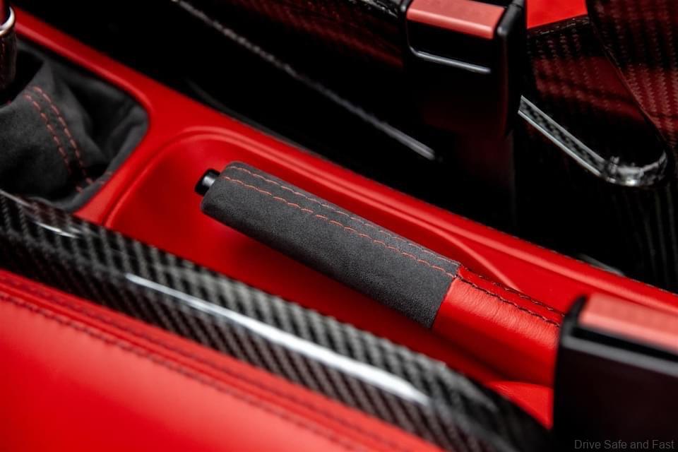Inside, Rogan has gone for a blend of black and red for his interior. exposed carbon fibre is seen on the bucket seats, floor panel and more. There’s also a lot of Alcantara and leather inside.