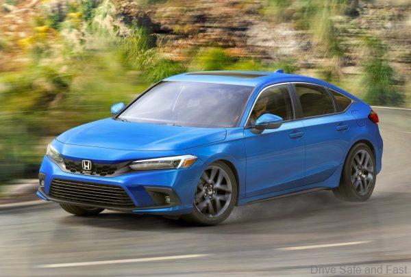 Eight colors are available on the 2022 Civic Hatchback, including two new hues: Boost Blue Pearl and Smokey Mauve Pearl.