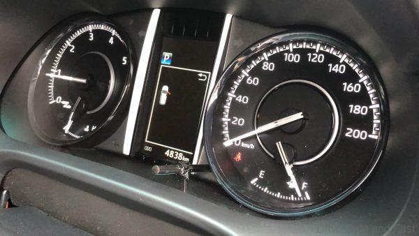 The instrument panel for the Fortuner has been redesigned, the MID has additional information for the driver. This variant also gets a new interior trim colour and new seat upholstery colour.
