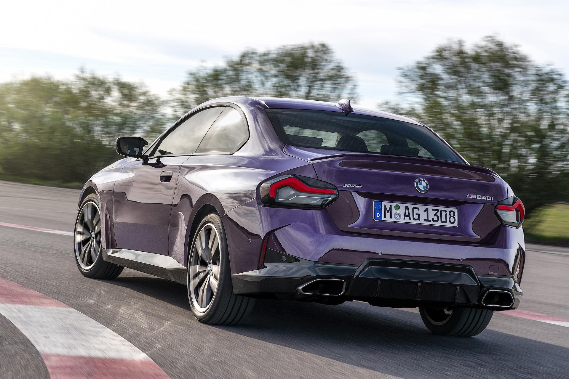 - Eye-catching front-end design featuring individual headlights in BMW 02 style and a new-look BMW kidney grille. Vertically arranged active air flaps instead of bars. Sporty and graceful silhouette composed of crisp lines and surfaces sculpted for a muscular feel. Pronounced wheel arch flaring gives the rear a powerful look. Compact rear light units with rearranged LED light functions. Distinctive design accents for M Sport specification and BMW M240i xDrive Coupé.