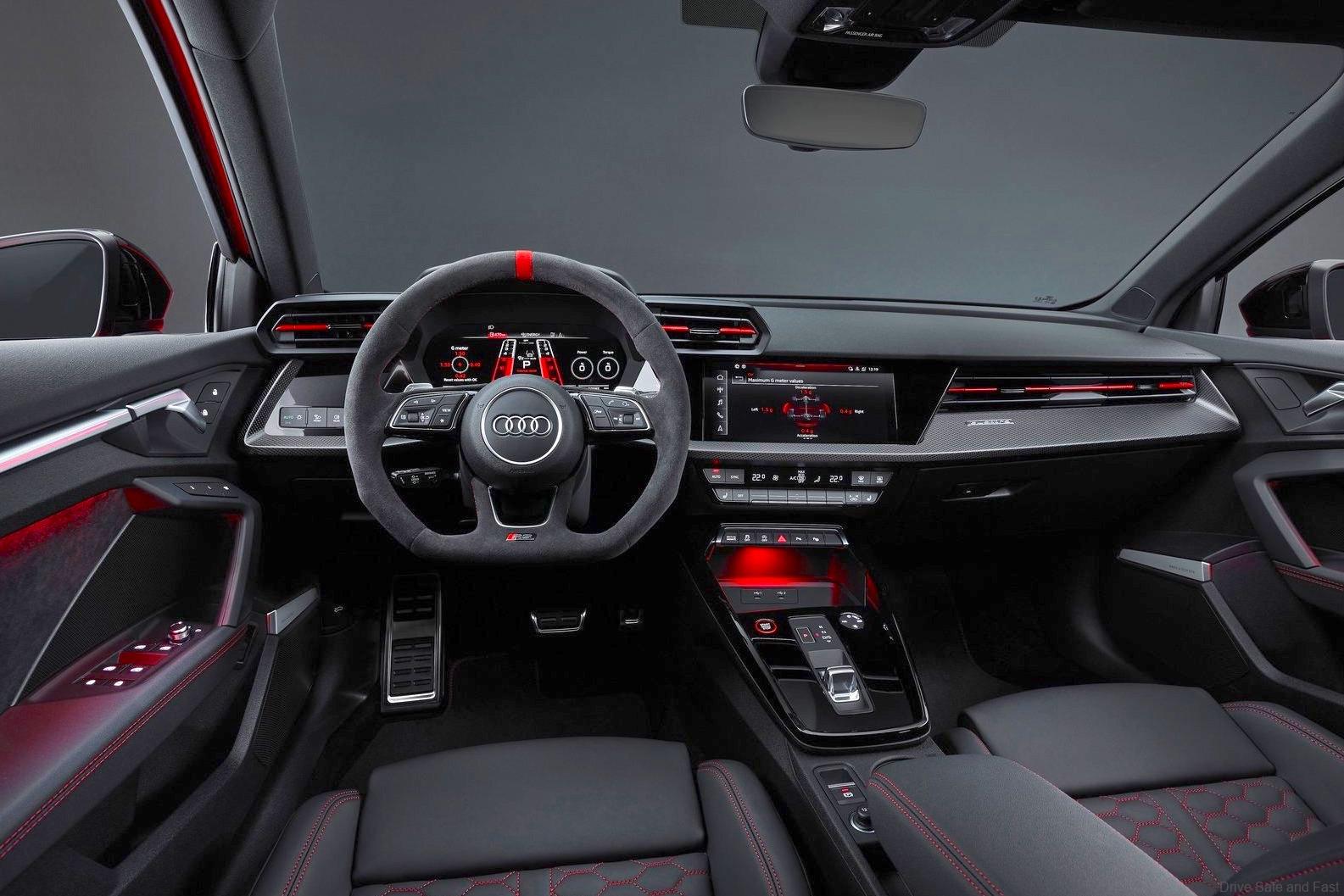 The engine delivers 500Nm of torque and responds even faster than before. Visually, the RS3 demonstrates its sporty DNA with a widened body, RS sports exhaust system, and cockpit displays like those found in race cars.