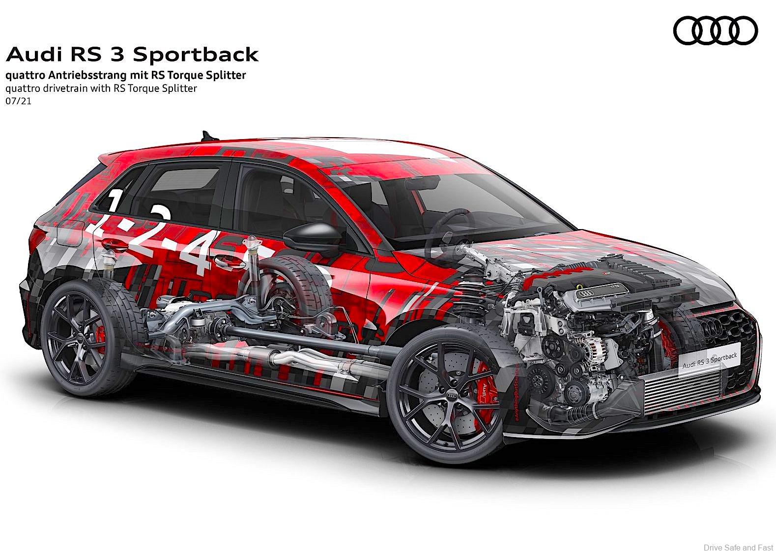 There is also a RS Torque Splitter, semi slick rubbers on all four wheels and specific RS driving modes to entertain the driver of the RS3.