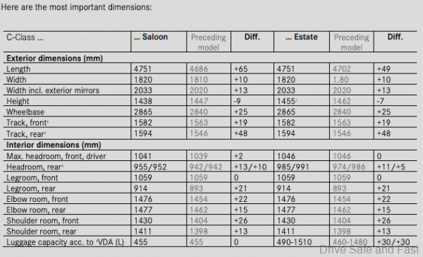 Like with previous Mercedes sedans, this new W206 sedan has grown in dimensions against the current and soon outgoing model. Both the front and rear passengers benefit from the moderately increased exterior dimensions of the new model generation. Elbow-room has been increased by 22 mm in the front and 15 mm in the rear over the previous model. Headroom in the rear has increased by 13 mm. Thanks to up to 35 mm more knee-room in the rear, journeys will be even more pleasant for passengers in the rear.