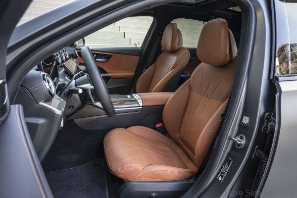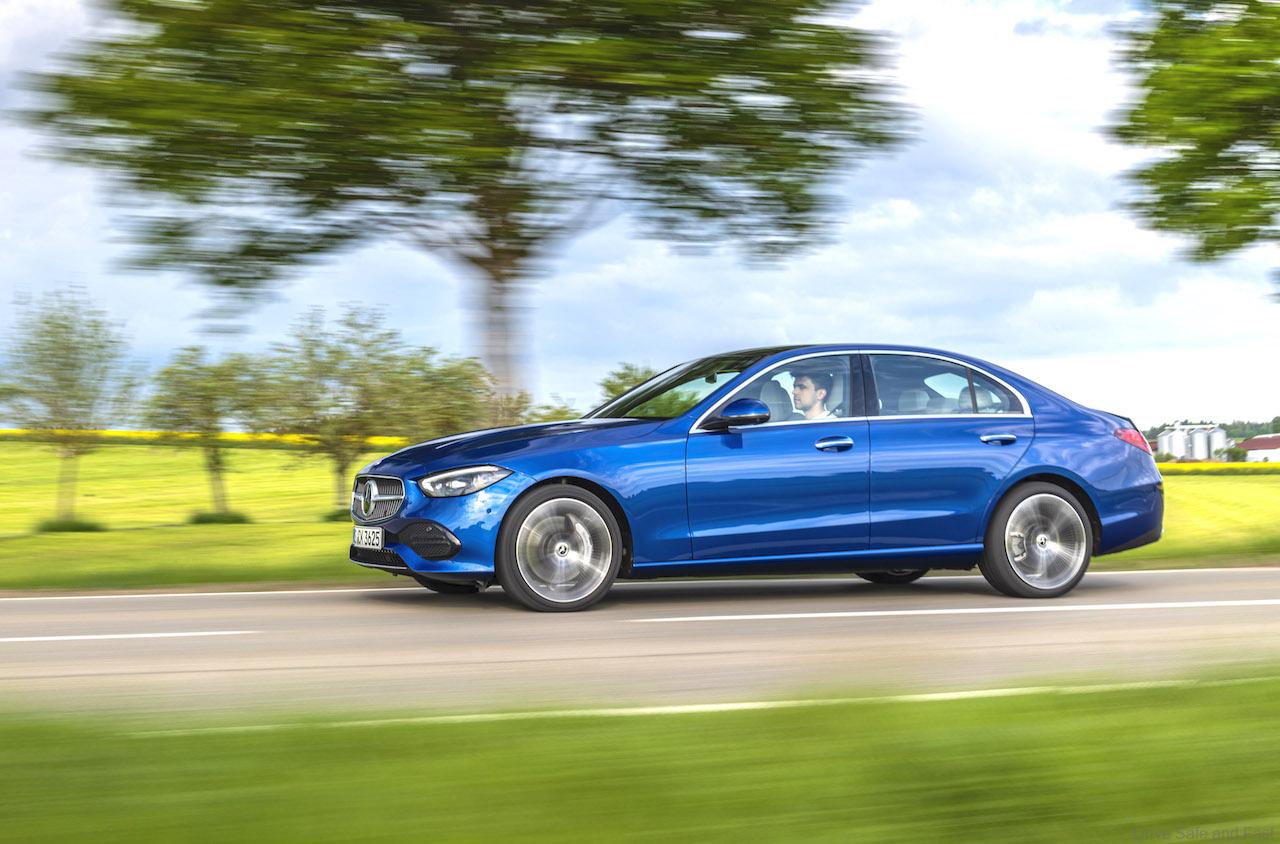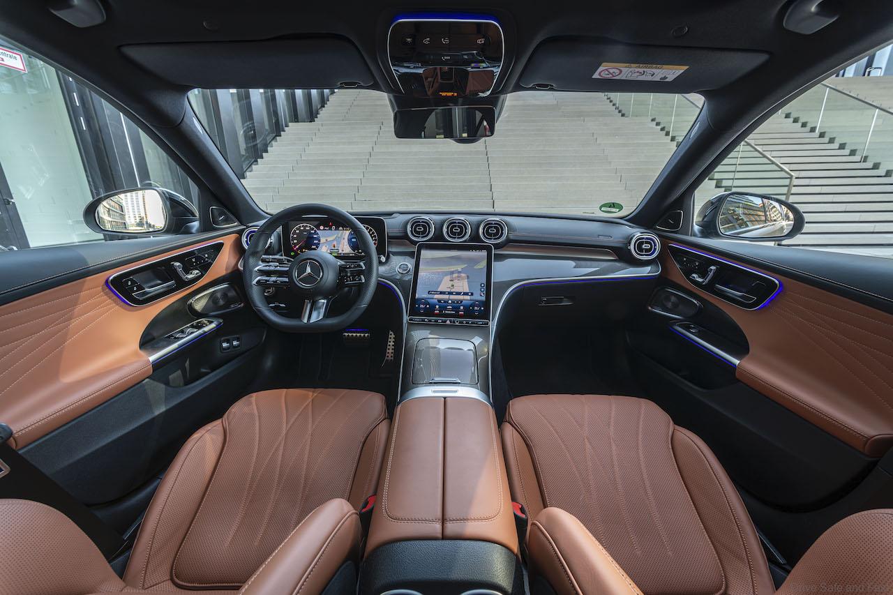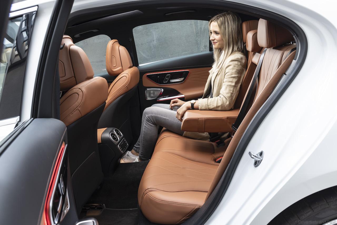 Like with previous Mercedes sedans, this new W206 sedan has grown in dimensions against the current and soon outgoing model. Both the front and rear passengers benefit from the moderately increased exterior dimensions of the new model generation. Elbow-room has been increased by 22 mm in the front and 15 mm in the rear over the previous model. Headroom in the rear has increased by 13 mm. Thanks to up to 35 mm more knee-room in the rear, journeys will be even more pleasant for passengers in the rear.