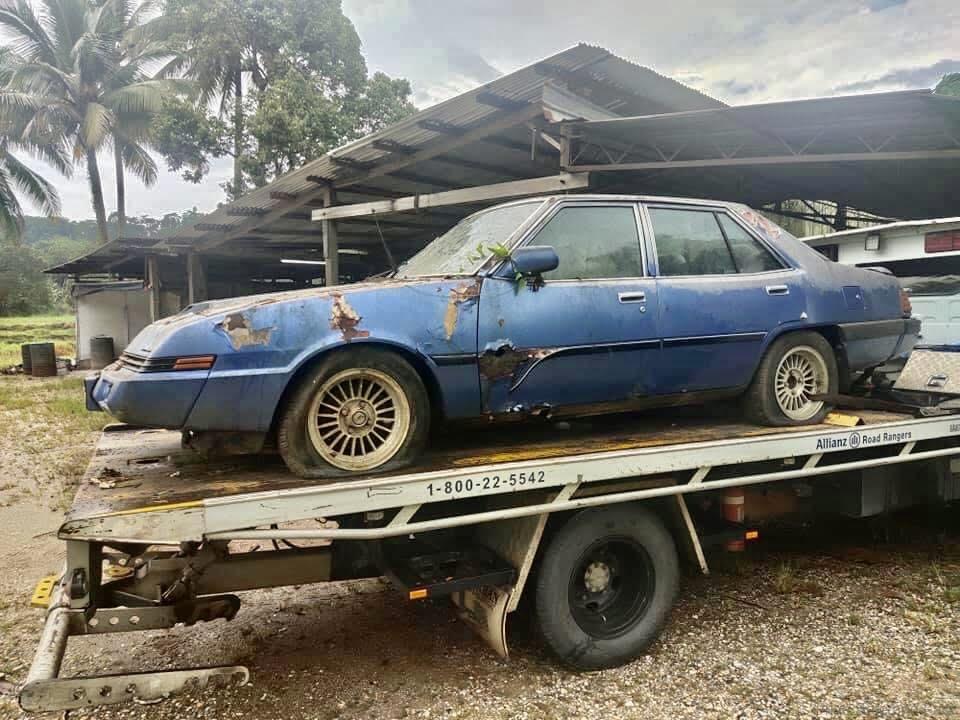 Spotted on facebook, we managed to trace some information on this hybrid Mitsubishi sports sedan. Retro mechanic Syuk Garage had located this idle machinery in a village and after negotiations with the owner towed the car to his workshop.