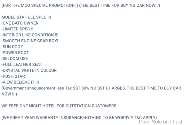 It shows that this is a simple cut and paste statement that almost all used car dealers use and because it has worked year in and year out they keep on using it and for some used car buyers who actually believe these statements they turn to social media or tribunal to lodge a complain about the miss-truths that were written in the used car advertisement.