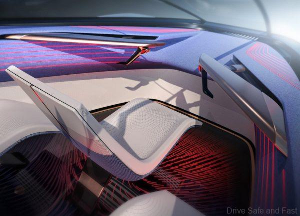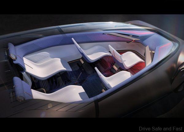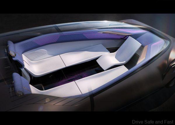 The interios is designed in such a way that the cabin is narrower at the front and wider at the rear. This gives occupants in the rear space to rest or sleep. In fact, because the concept car has autonomous driving, it allows for all passengers to experience a few different modes.