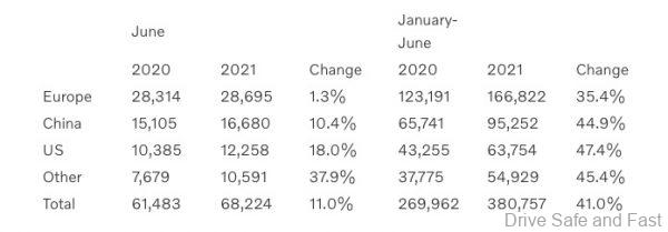 Sales in China reached 95,252 cars in the first half, an increase of 44.9 per cent compared to the same period in 2020. Sales for the month of June came in at 16,680 cars, up 10.4 per cent.