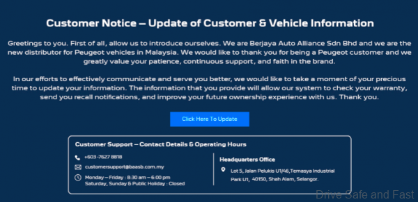 Through this exercise, information such as service reminders, warranty periods, service campaigns, news and additional support would be streamlined and made more accessible for Peugeot owners. Owners are required to provide proof of their vehicle registration card, service and warranty booklets, by logging onto the website and completing the information updates. All information collected would be protected in accordance to the Personal Data Protection Act (PDPA) law of Malaysia.