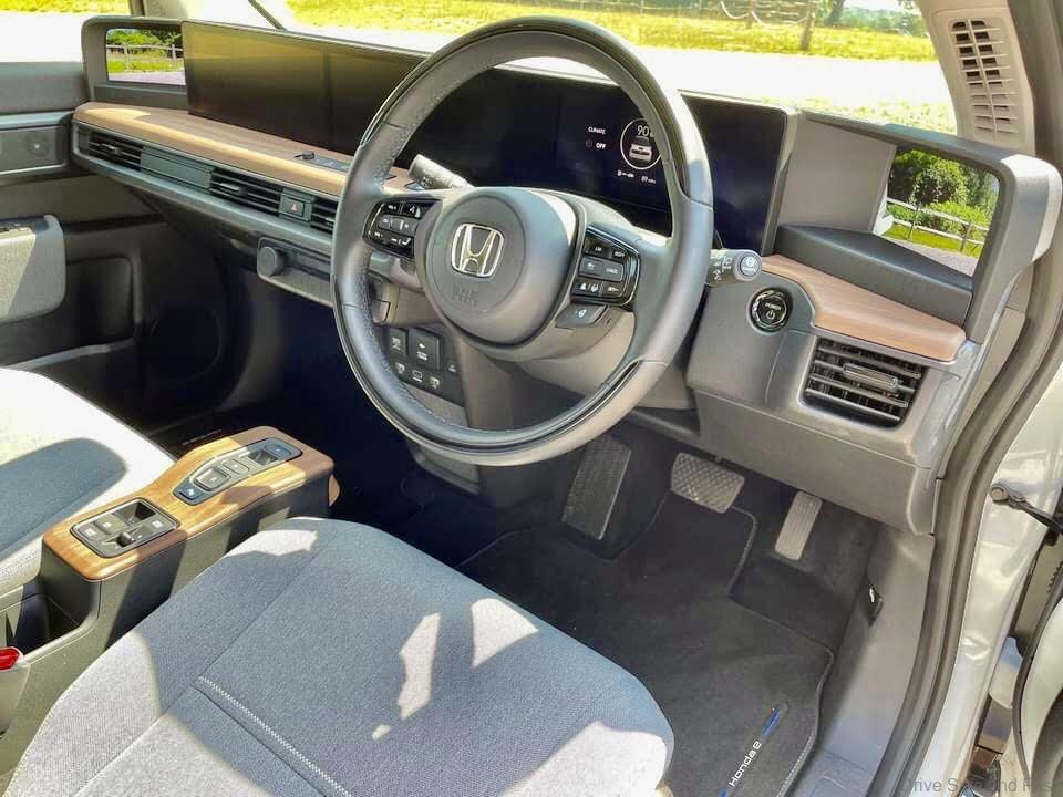The Honda e is sold in Britain in two grades – Honda e provides a 222 km range (WLTP), along with a comprehensive standard specification. Honda e Advance features an increased motor output and a Centre Camera Mirror System which can be switched on to relay the image from a central rear-facing camera to the rear-view mirror display. Other upgrades include a more powerful audio system and the smart Honda Parking Pilot driver aid.
