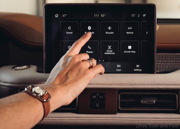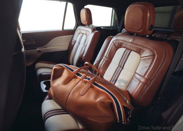 Taking cues from the Shinola brand stripe, a woven textile sewn into the seats in all three rows makes for a unique, textural look. Liam Butler, Lincoln color and material designer, says he took each stitch of the original stripe then scaled to proportion, adding a blue tone that acknowledges Lincoln’s many signature blues.
