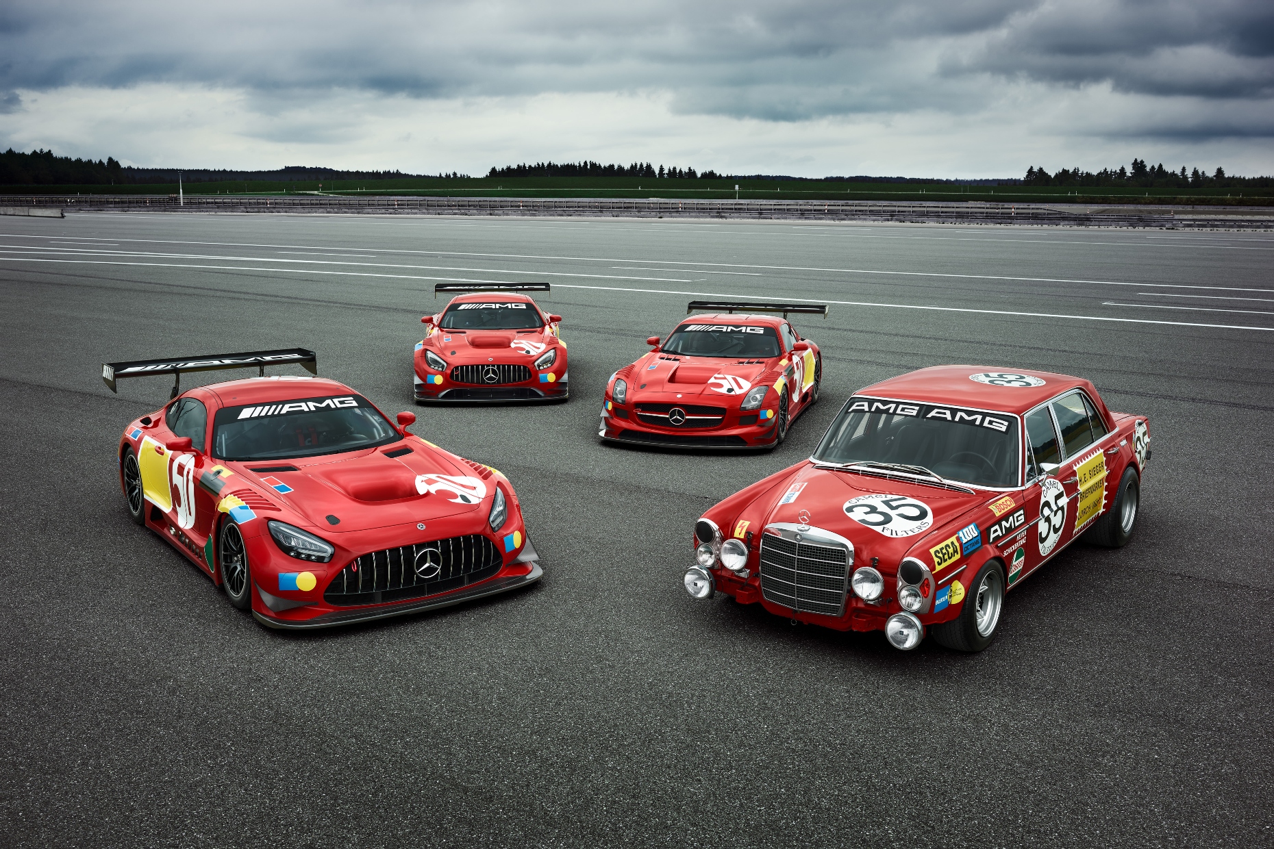It includes all three GT3 generations that have been available since 2010. For maximum exclusivity, the number has been limited to one of each. Next to the iconic red livery, the three unique pieces incorporate further exclusive characteristics and specifications. The special editions as well as a replica of the legendary Mercedes-Benz 300 SEL 6.8 AMG are on public display for the first time during this year’s 24-hour race at Spa.
