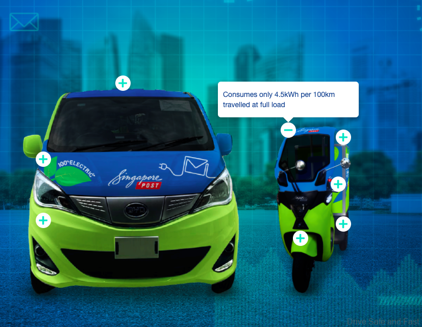 SingPost intends to progressively switch its entire internal combustion engine fleet of more than 700 motorcycles and three-wheeler scooters, as well as 140 vans to electric motor equivalents as their COEs expire over the next five years, making SingPost the first postal service in the Asia-Pacific region to commit to a 100% electric delivery fleet.