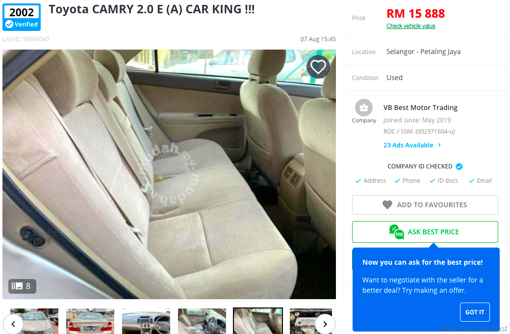 Today, some 19 years later, this Camry has depreciated by almost 90 percent and this is good news for a person looking for a dependable large business or family sedan. Yes, prices in the used car classified start from a low RM12k to RM24k for the last batch in 2015 and this is before some hard bargaining.