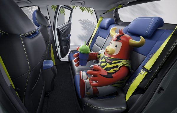 Aesthetically, the interior design was developed with young consumers in mind. Adopting a two-tone black and blue colour scheme with visually impactful fluorescent highlights, a stylish, clean, and sophisticated atmosphere is created. Suede-like soft touch materials applied liberally throughout the interior and ergonomically designed seats provide occupants with a more comfortable ride experience.