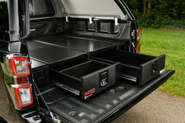 Made of ABS plastic, the canopy has blank sides and comes with tinted rear doors, interior light, brake light and a sliding bulkhead window for ventilation. It can be equipped with roof rails with a load capacity of 80 kg. The bed draw system, meanwhile, features two drawers and two storage compartments which are all lockable.