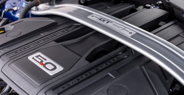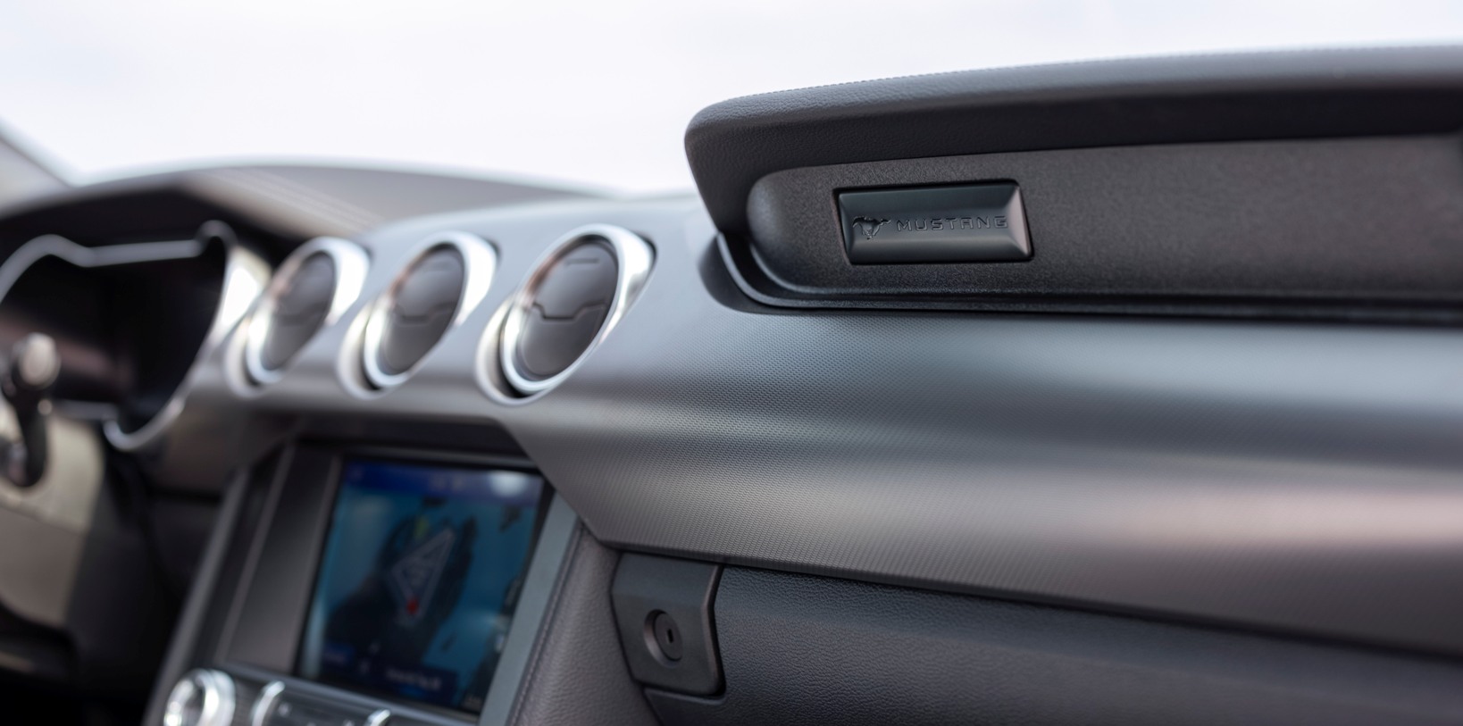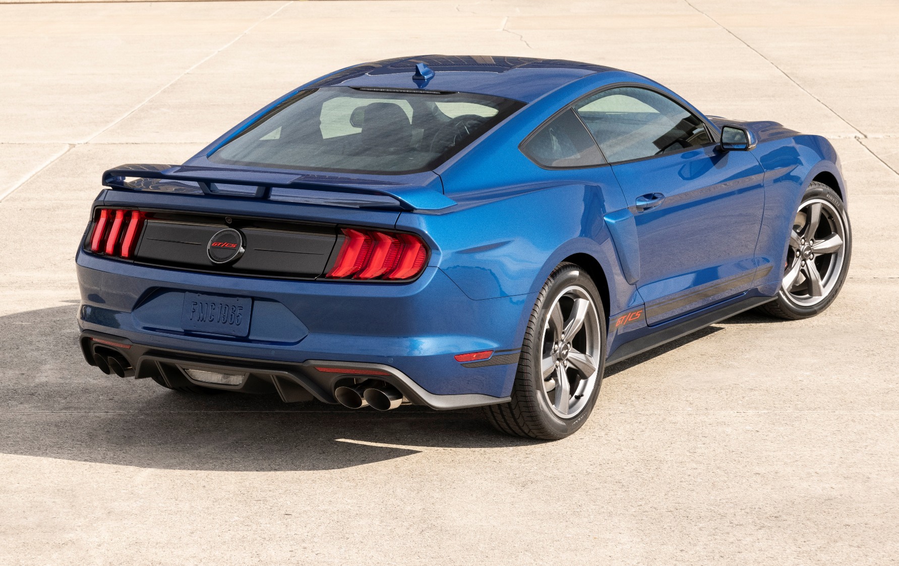 Available on both the Mustang GT fastback and convertible, the California Special appearance package pays homage to the original version’s blacked-out grille, side racing stripes and rear fender scoop. It also comes with a California Special badge in Ebony Black and Race Red on the trunk lid, a honeycomb grille with a “GT/CS” badge and 19-inch painted machined wheels. A CS badge is also found atop the 5.0-litre V8 engine.