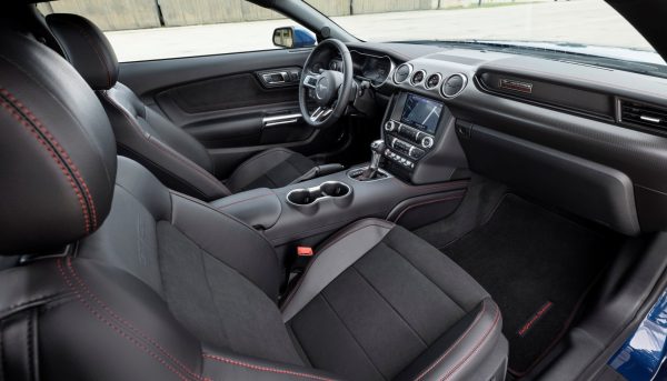 As the name would suggest, the Stealth Edition features 19-inch aluminium wheels in Ebony Black, black pony badges, and black mirror caps. Also included in the package are a “performance” rear wing and clear LED taillights, which are also found on the Mustang Ice White edition introduced in August. Inside, there’s a matte and gloss black instrument panel badge and lighted sill plates.