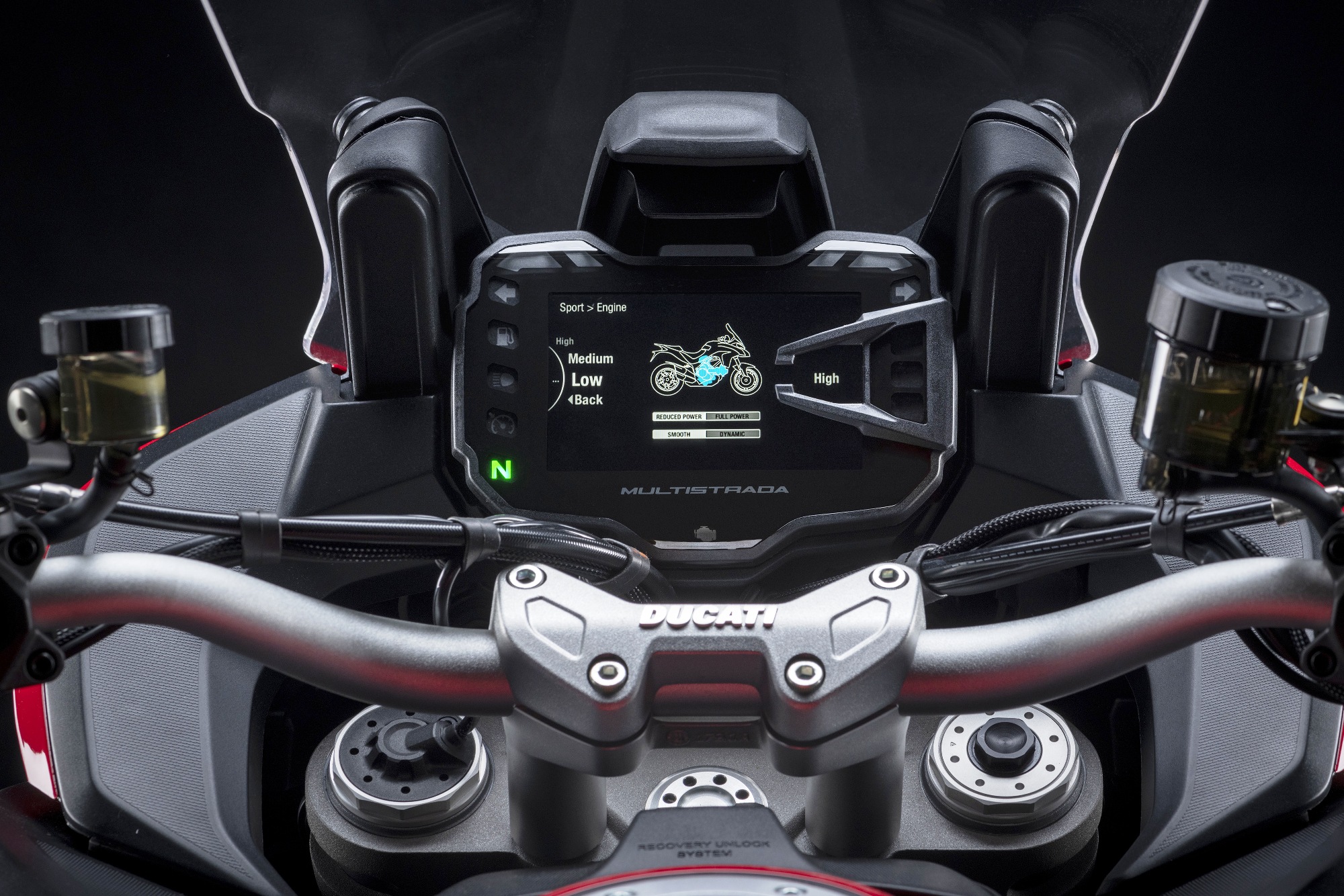 As mentioned, weight saving was also one of the key areas of improvement. Compared to Multistrada 950, the V2 is 5 kg lighter with a final dry weight of 199 kg (202 kg for the S). The engine itself has lost about 2 kg, while various parts of the bike have also been lightened, including the mirrors, the front brake disc flanges and the rims.
