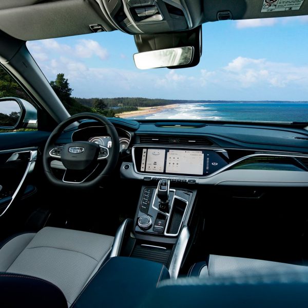 At the rear, changes are limited to new bumper design and a diffuser. These are accompanied by a gloss black trim piece with a neatly spaced ‘GEELY’ script in between the taillights, and an ‘X’ logo on the right hand side of the tailgate.