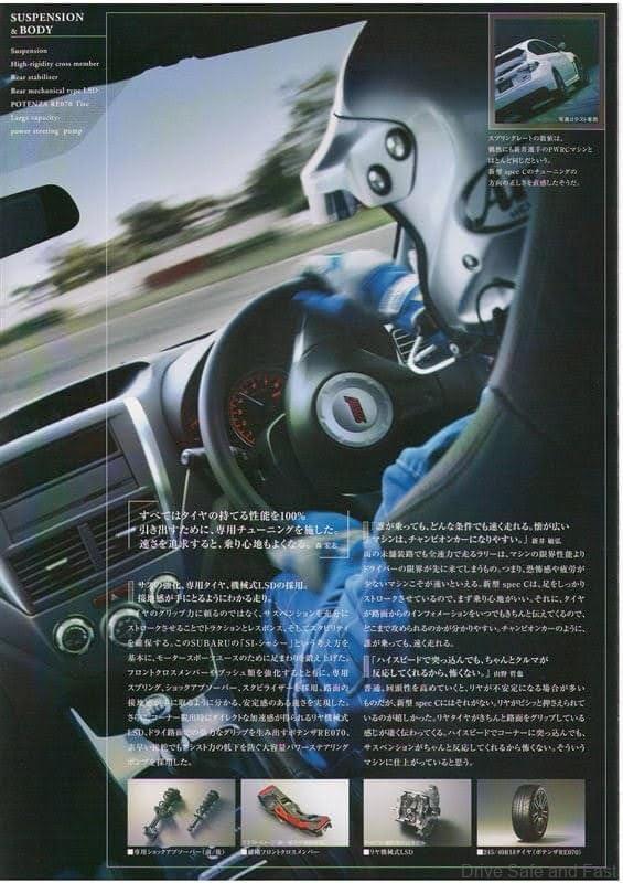 The chassis was changed to the GRF chassis as it was equipped with a larger 2.5 litre Subaru EJ257 flat 4 turbocharged engine. The A-Line is a special car because it was equipped with a 5-speed automatic transmission, a first in the history of Impreza WRX STI.