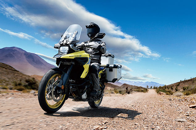 For the Malaysian market, the V-Strom 1050XT comes standard with a set of Suzuki genuine aluminium side cases in silver, as well as an array of exclusive equipment such as an aluminium under cowling, accessory bar, LED turn lights, knuckle guards, an adjustable seat and windscreen and a 12V DC socket.