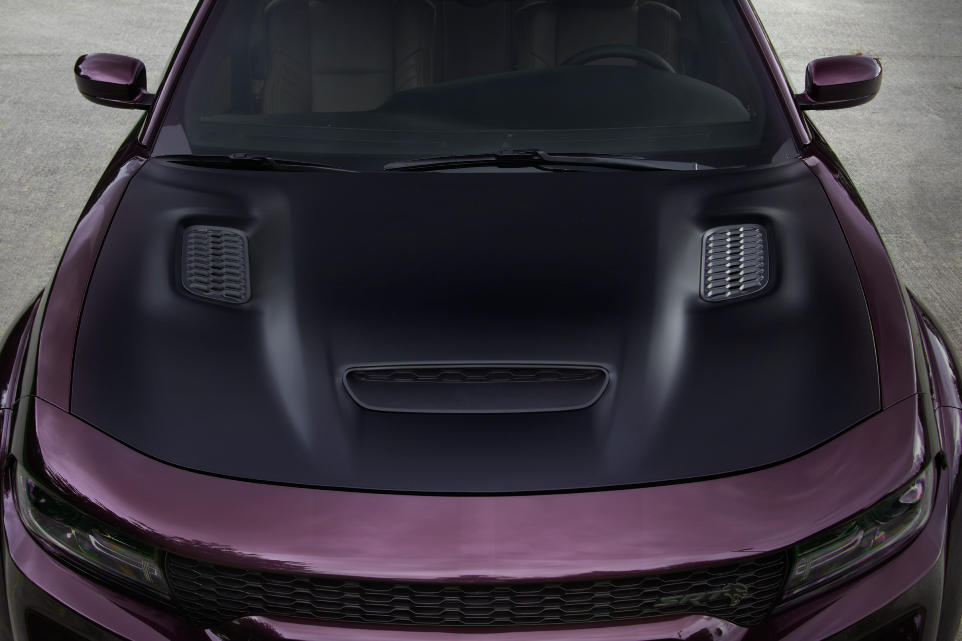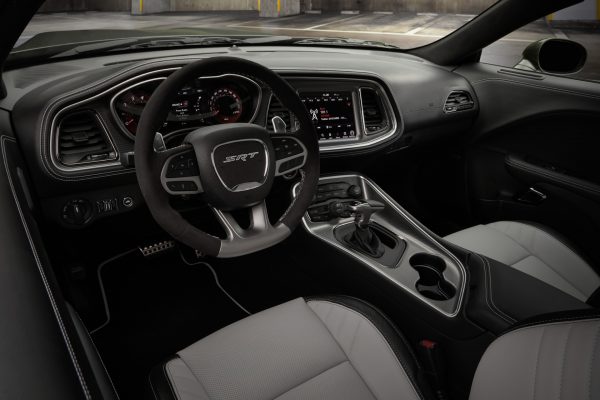 - Leather steering wheel and Alcantara steering wheel options, with white SRT logo