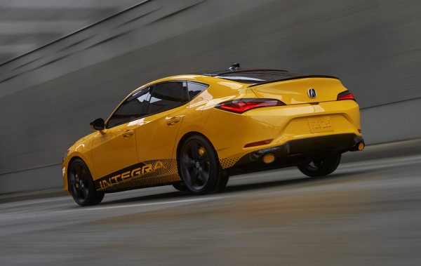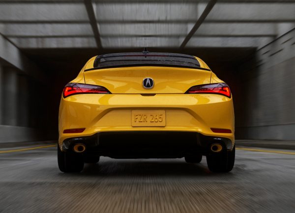 Of course, you can find several cues that pay homage to past Integras, such as the embossed model script under the driver’s side headlight and passenger’s side taillight. In addition, the Indy Yellow Pearl paint is a nod to 2001 Integra Type R’s famous Pheonix Yellow. It is paired with Berlina Black accents on the roof, decklid spoiler, mirror caps, rear diffuser and front grille.