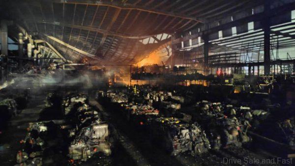 What’s going to happen to all that burnt inventory? Well, most likely a lot of the glass and metal parts will have to be sold as scrap metal wherever applicable. Anything plastic is probably going to be worth nothing. It looks like an entire warehouse floor of engines and transmissions were burnt to a crisp.