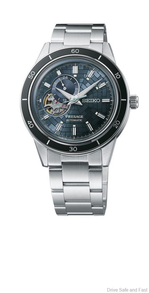 The Presage creation features the same cobblestone-inspired dial pattern and Komparu colour seconds hand, but the watch has the distinguished aspect of the recently released “Style60’s” design series inspired by the 1964 Seiko Crown Chronograph. The box-shaped glass, sharp hands and faceted indexes are inherited directly from the Crown Chronograph and create a retro feel that matches perfectly with the classic dial pattern. The opening at the 9 o’clock position allows the wearer to see and enjoy the beating of the escapement and the 24-hour sub-dial above it offers a different and useful way to tell the time. This Presage watch is offered as a limited edition of 4,000 and will also be available in Seiko Boutiques and selected retail partners.