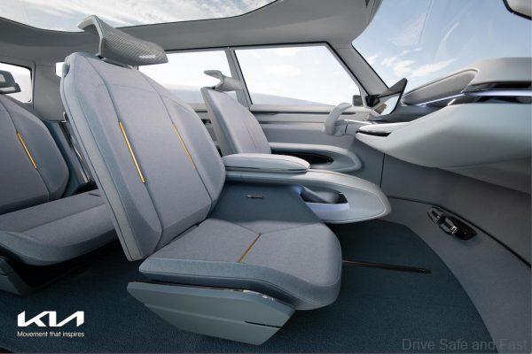 Led by Karim Habib (Senior Vice President of Kia and Head of Kia Global Design Centre), the Kia design team took inspiration from the ‘Bold for Nature’ pillar of the Opposites United design philosophy. This has helped the all-electric SUV concept to take on an iconic and bold form with playful, rugged features and styling cues. From the outside, such proportions help outline a three-row SUV footprint.