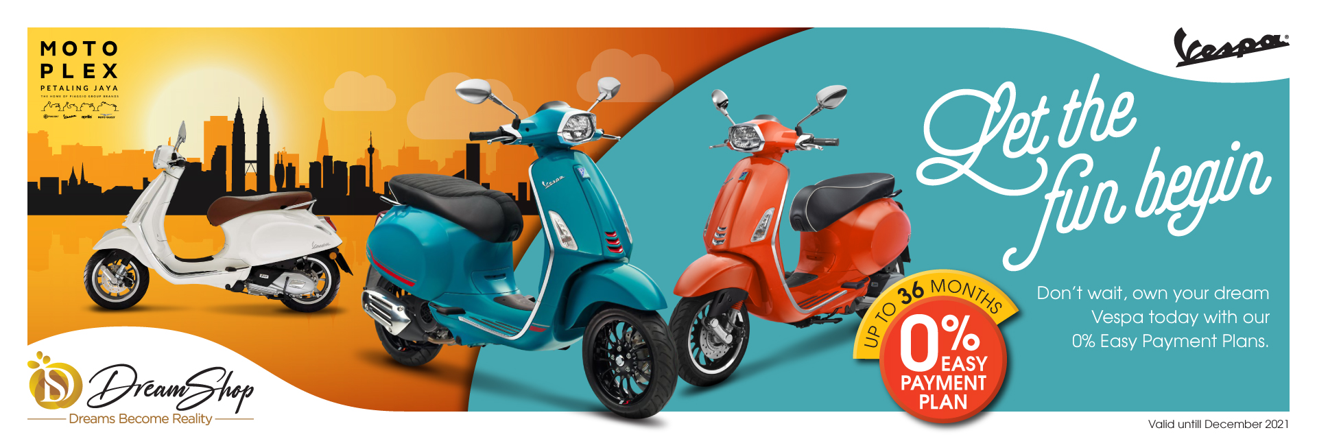For the first time in Malaysia, customers will be able to purchase a Vespa scooter online on www.dreamshop.com.my, with a 0% Easy Payment Plan and certain additional offers. This collaboration marks the entry of Vespa into the e-commerce space, giving Malaysian customers the additional convenience and value of online shopping.