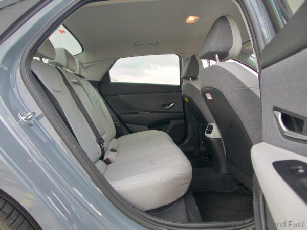 This firmer suspension feel goes quite well with the Elantra’s overall interior build quality and look. It communicates a relaxed drive that’s more concerned with cocooning the occupants in comfort than bracing them for hard corners. Yes, there is a little bit of driver-centric design going on in front, but it’s really more of a family car than a racer boy’s.