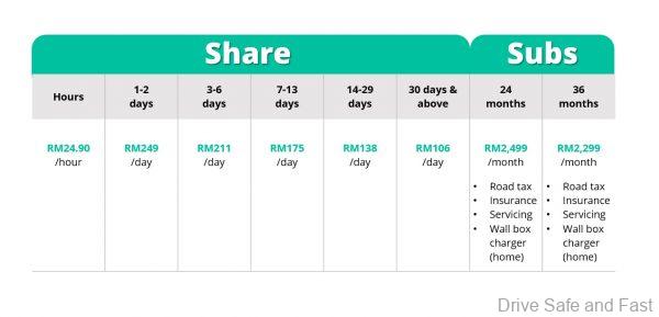 As you can see, opting for a 2-year or 3-year subscription entitles you to a wall box charging, which enables home charging. It also covers your road tax and insurance.