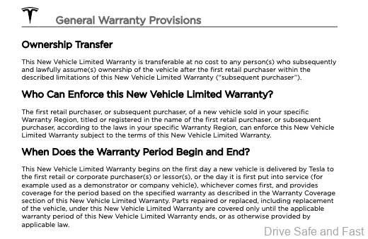 So, before you pay for your new or even Tesla, ask for a factory warranty. Please see attached below screenshot images of some of the important pages in the Tesla warranty.