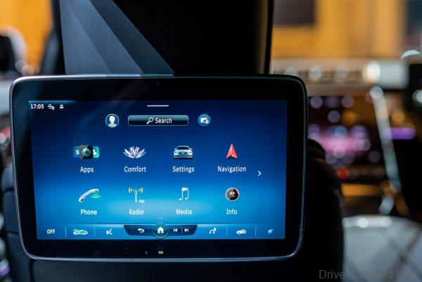 The second-generation MBUX system features machine learning and powers 5 displays with OLED technology. The system features a fingerprint scanner below the central display. The driver gets a new 3D driver display for a spatial view without the use of 3D glasses. MBUX Augmented Reality Navigation connects the virtual with the real while the voice assistant is triggered by the “Hey Mercedes” trigger word and can answer general knowledge questions and take voice inputs from the rear occupants as well.