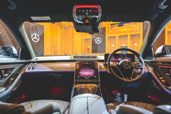The new S-Class interior features interactive interior lighting on top of the existing ambient lighting. This interactive lighting is integrated with the driving assistance systems to reinforce alerts visually and also works with other MBUX systems.