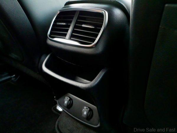 Passengers in the rearmost row are treated to a few niceties. This updated model brings air cond vents on either side of the row plus some simple but functional controls for the blower motor there. There’s also a 12V power socket on the opposite side.