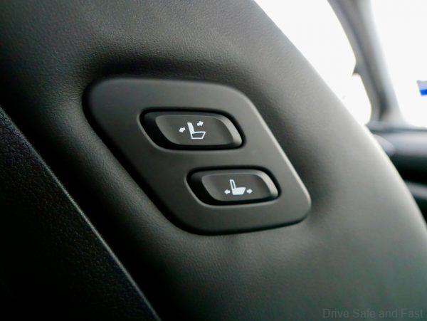 This semi-motorised tumble button is located next to the headrest for the third row occupants to access and at the base of the seat facing the left door.