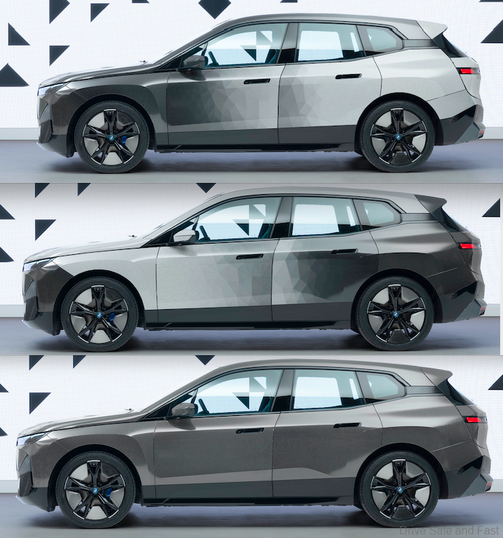 BMW recently showed off a dark grey SUV called the iX Flow (based on the current iX), which in a few seconds changes colour from dark grey to bright white. This is the first-ever demonstration of a technology that changes the exterior color of a vehicle with the touch of a button.