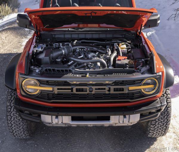 The Ford Bronco Raptor is shown with serious off-roading performance.