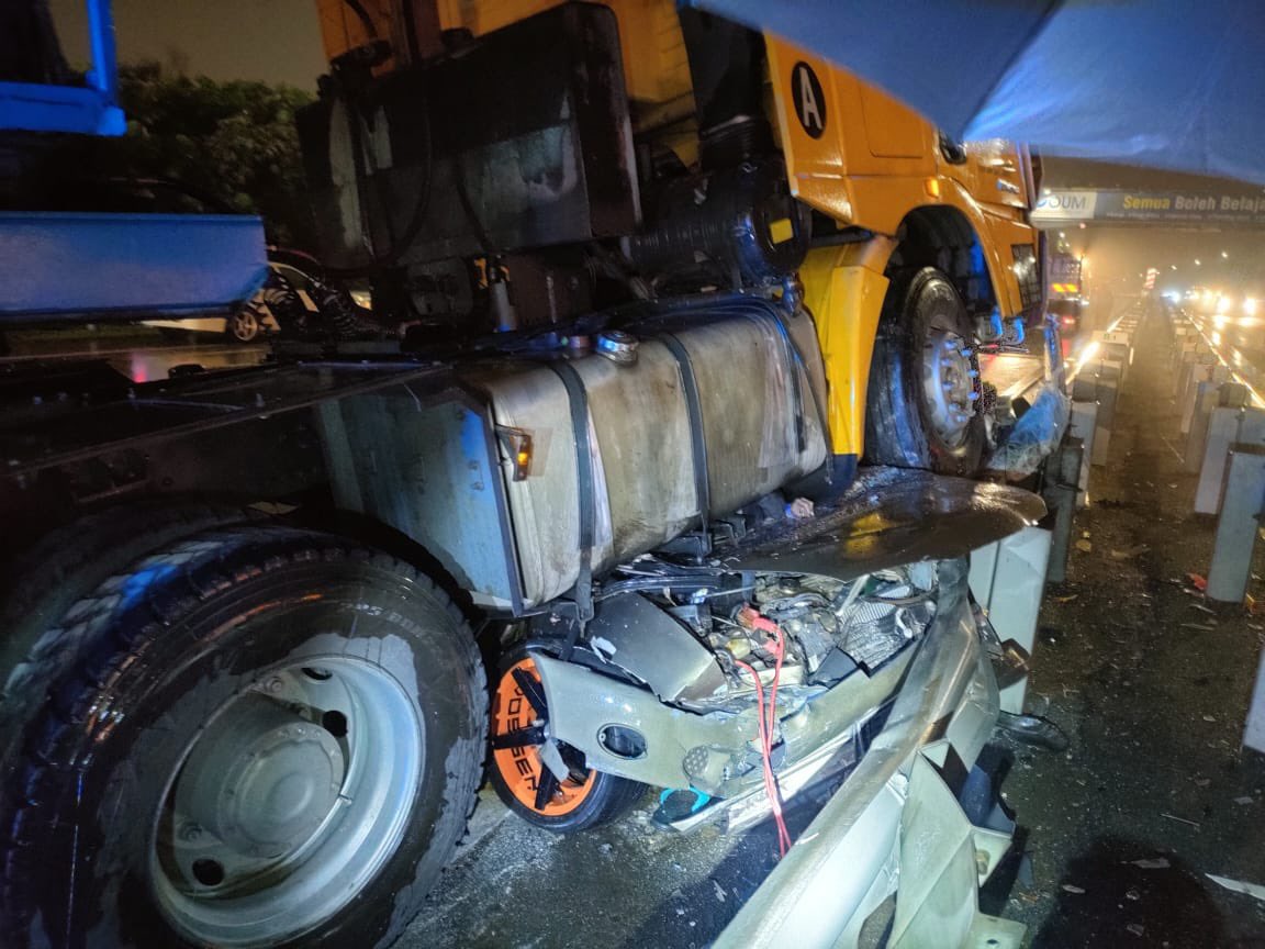 The Proton Wira the family was travelling in had stopped on the emergency lane due to a dead battery before it was rear-ended by a trailer. It was reported that the trailer had also rammed into two other cars whose drivers had stopped to give assistance.