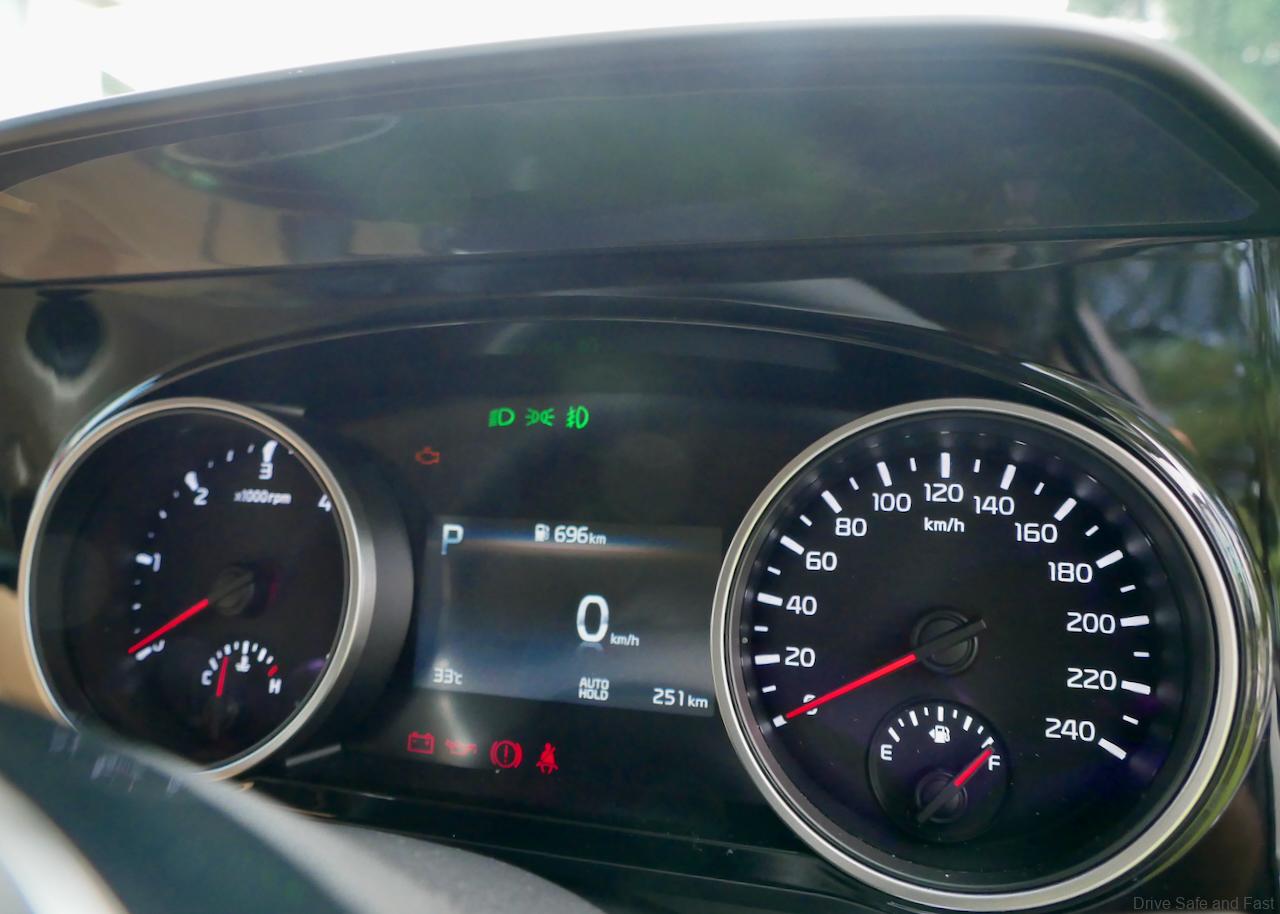 The driver also gets a little colour multi-info display along with analogue instruments in the typical clear Kia fashion. The drive-by-wire gear selector interface is a rotary knob in the centre.