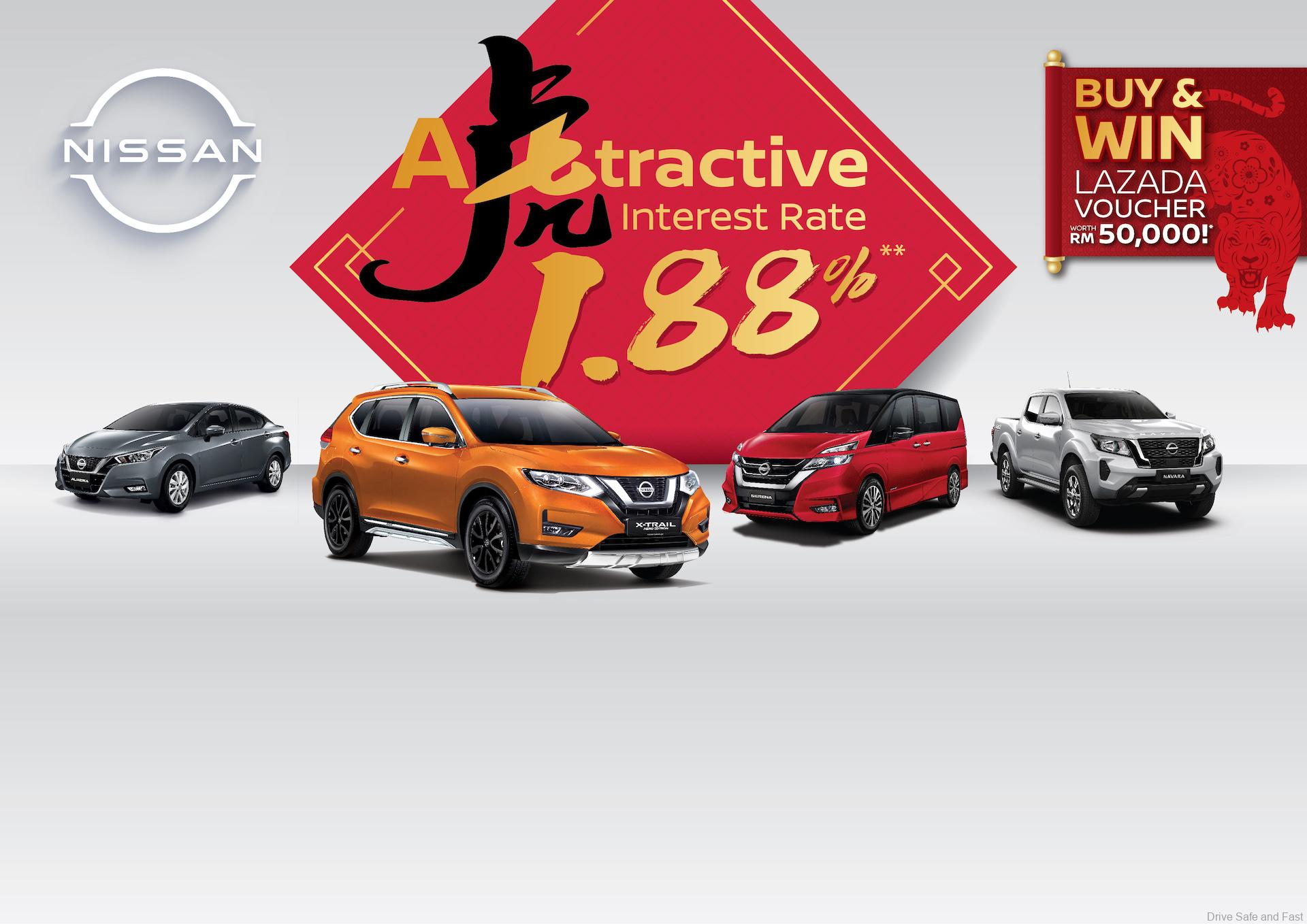 To embrace the celebration of the Chinese New Year, ETCM has also extended the attractive 1.88% Interest Rate for selected Nissan models to 28 th of February. This Chinese New Year campaign further rewards customers who purchase and register a Nissan car an opportunity to participate and win Lazada Vouchers up to RM50,000*.