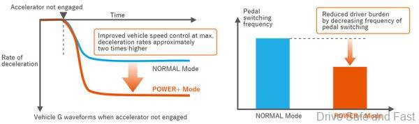 The Aqua is the first Toyota model to feature the Comfort Pedal. By selecting the Power+ Mode, drivers only have to relax pressure on the accelerator pedal to generate regenerative braking force, and smoothly slow the vehicle.