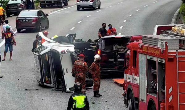 Four members of a family were killed when the Hyundai Grand Starex MPV they were travelling in was rammed head-on by a Toyota Hilux pickup truck along Lebuhraya Sultan Iskandar in Kuala Lumpur on Sunday (27 February 2022).