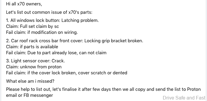 If you visit the numerous Proton X70 Facebook owner’s pages you will see the growing number of unhappy owners and the almost ridicules issues that are being highlighted. For example, to service the X70, there is NO engine oil. When your car battery fails, you must use only the Proton car battery and no other brand to avoid losing your warranty. Proton X70 fender benders cannot be fixed as there are NO bumper spare parts available.