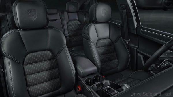 Inside, you can expect 8-way adjustable, heated sport seats in black leather with a Sport-Tex Stripe pattern, and an embossed Porsche crest on the headrests. A multifunction GT heated sports steering wheel is included in Race-Tex with carbon trims and an ioniser and the door entry guards come in black aluminium as standard.