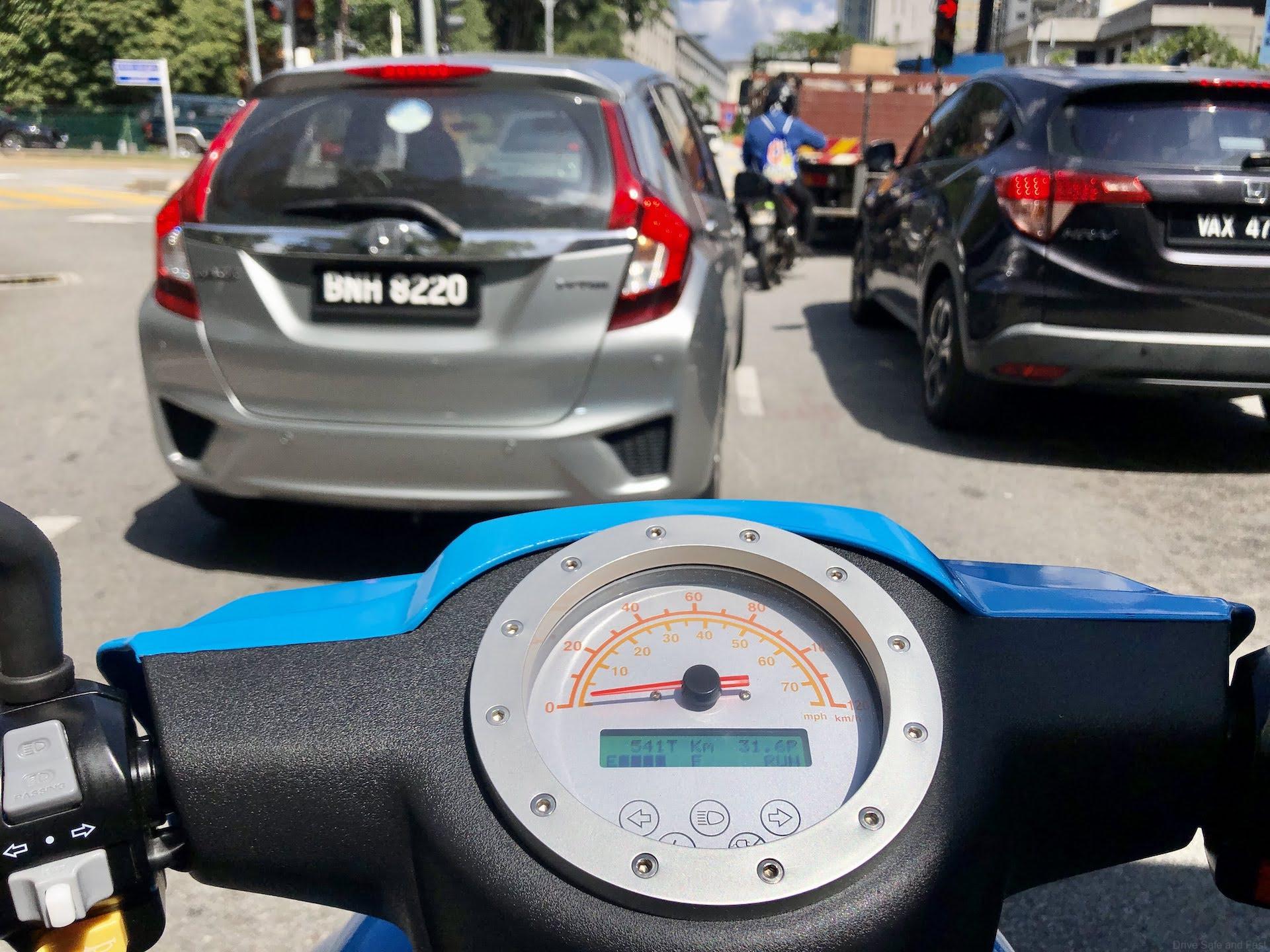 The ES-11 is a little heavier (battery pack and chassis) but it feels more stable at higher speed. Cornering is good and the brakes nice and firm. We used it on short trips and whenever we stopped for ‘long’ red lights, there will be another bike rider asking us ‘ini motor elektrik ke’? or ‘how far can you ride with a full charge’ and the final must ask question ‘how much is it’?.