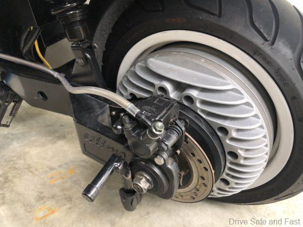 A full charge will allow the ES-11 rider to travel an average of 90 to 110km with clean weight of about 155kg. Rolling on 13-inch wheels the ES-11 uses hydraulic disc brakes front and rear.